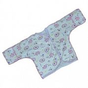 Распашонка со швами наружу, с рукавчиками-трансфоормерами, спереди с асимметричной застёжкой на кнопочках.